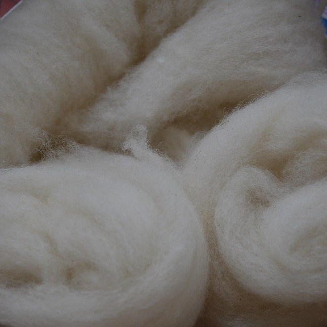 Tunis sheep are a heritage breed that originally roamed the white house grounds when George Washington was president. They have a beautiful cream colored fleece which is very versatile. Their fiber spins, felts and takes dye wonderfully. Our sheep are fed strictly organic grain and alfalfa pellets, resulting in clean, quality fiber. They have staple length of about 4 to 5 inches